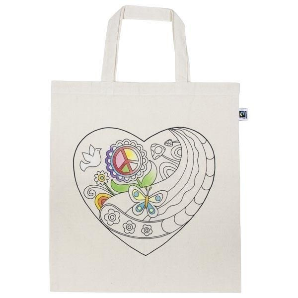 Torba z nadrukowanym sercem.. Idealna do malowania i ozdabiania, dzięki czemu dziecko rozwija talenty plastyczne i wyobraźnię. Wspiera postawę ekologiczną, ucząc zastępowania plastikowych siatek wielorazową torbą.