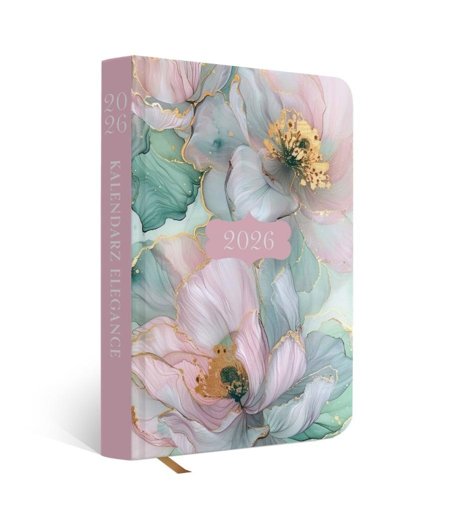 Kalendarz książkowy w twardej skóropodobnej oprawie ze wstążką. Okładka w dwóch wersjach "damska i męska". Układ kalendarium dzienny. 336 stron. Wymiary 143x211 mm