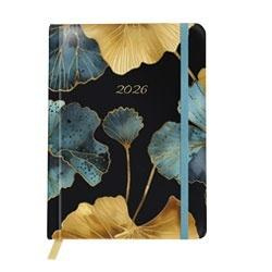 Kalendarz książkowy w twardej laminowanej oprawie ze wstążką i gumką zamykajacą. Układ kalendarium dzienny. 128 stron. Wymiary 135x190x10 mm