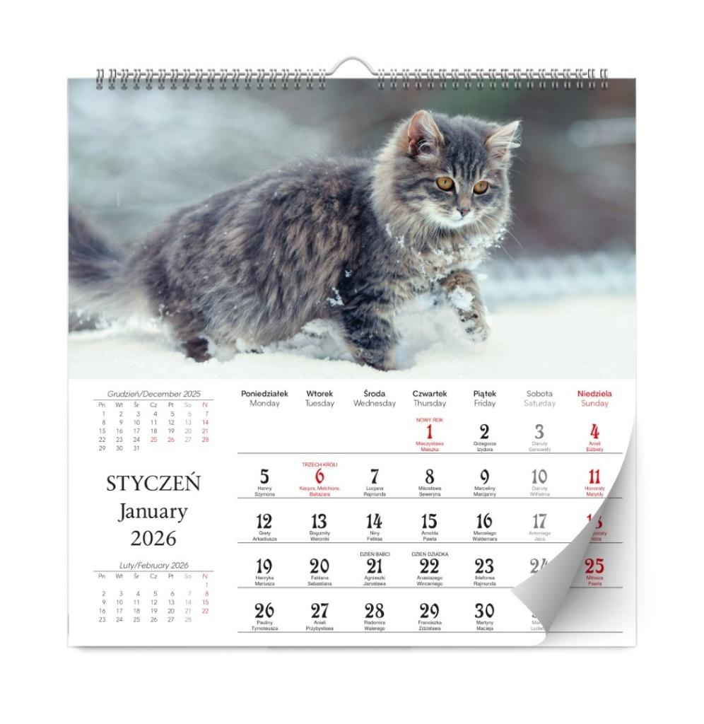 Kalendarz 2026 ścienny lux kociaki