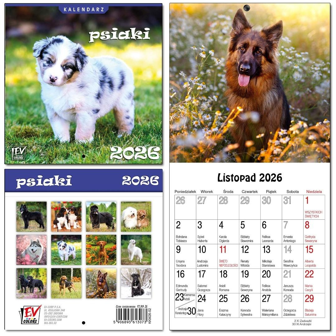 Kalendarz 2026 dla dzieci 16x32 13 plansz Psiaki
