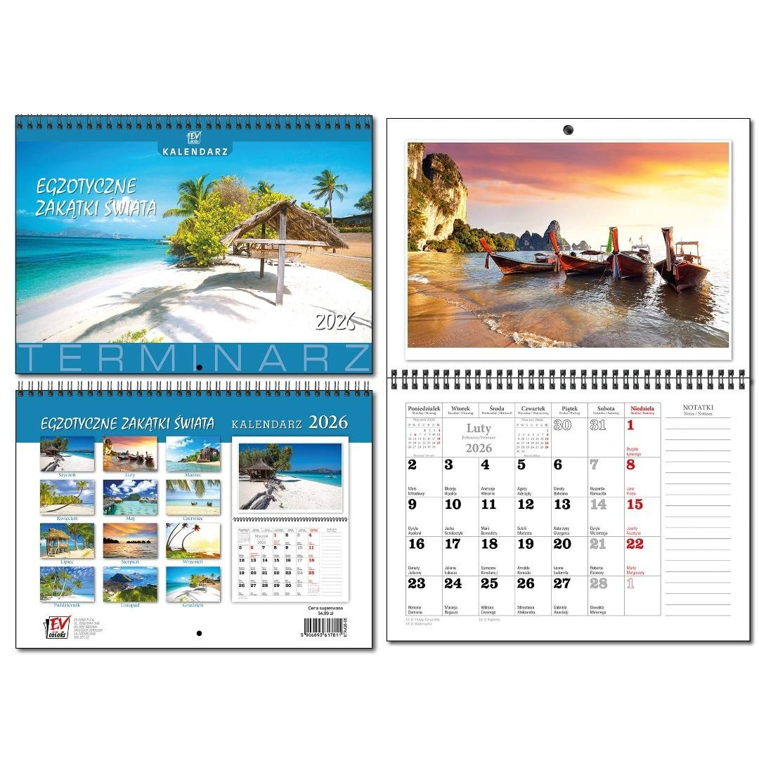 Kalendarz 2026 A3 terminarz 13p Egzot. Zakątki Św.