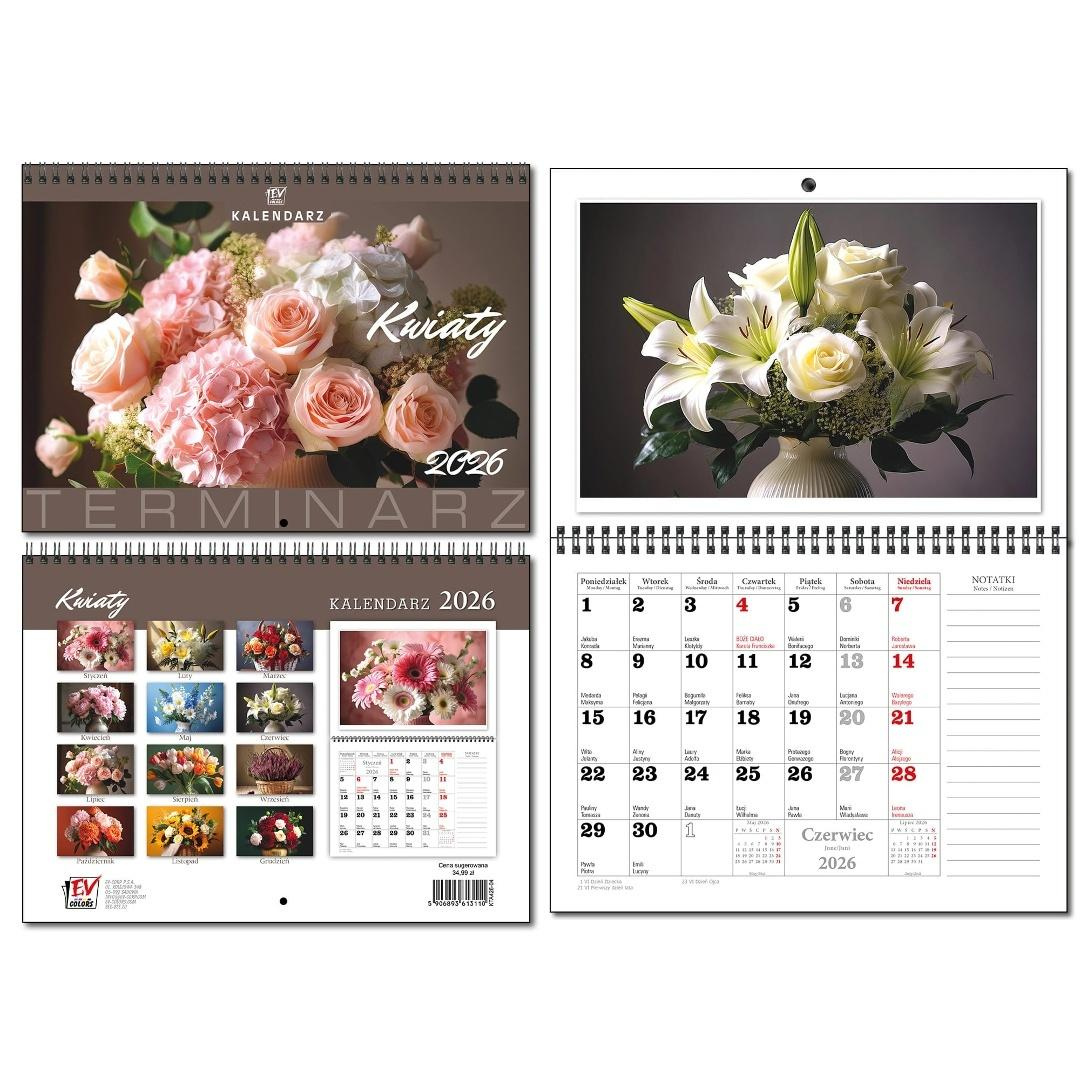 Kalendarz 2026 A3 terminarz 13p Kwiaty