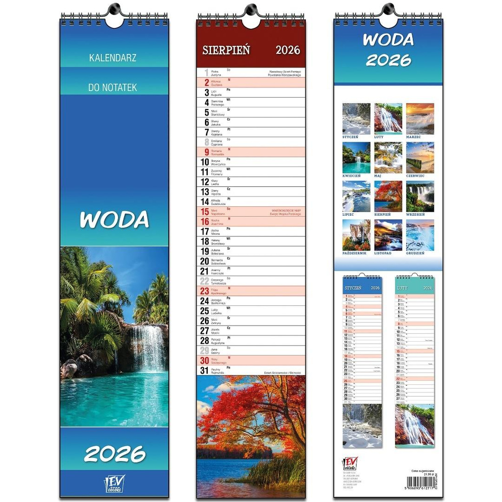 Kalendarz 2026 paskowy 13 planszowy Woda