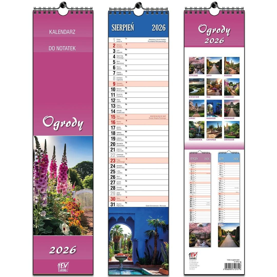 Kalendarz 2026 paskowy 13 planszowy Ogrody