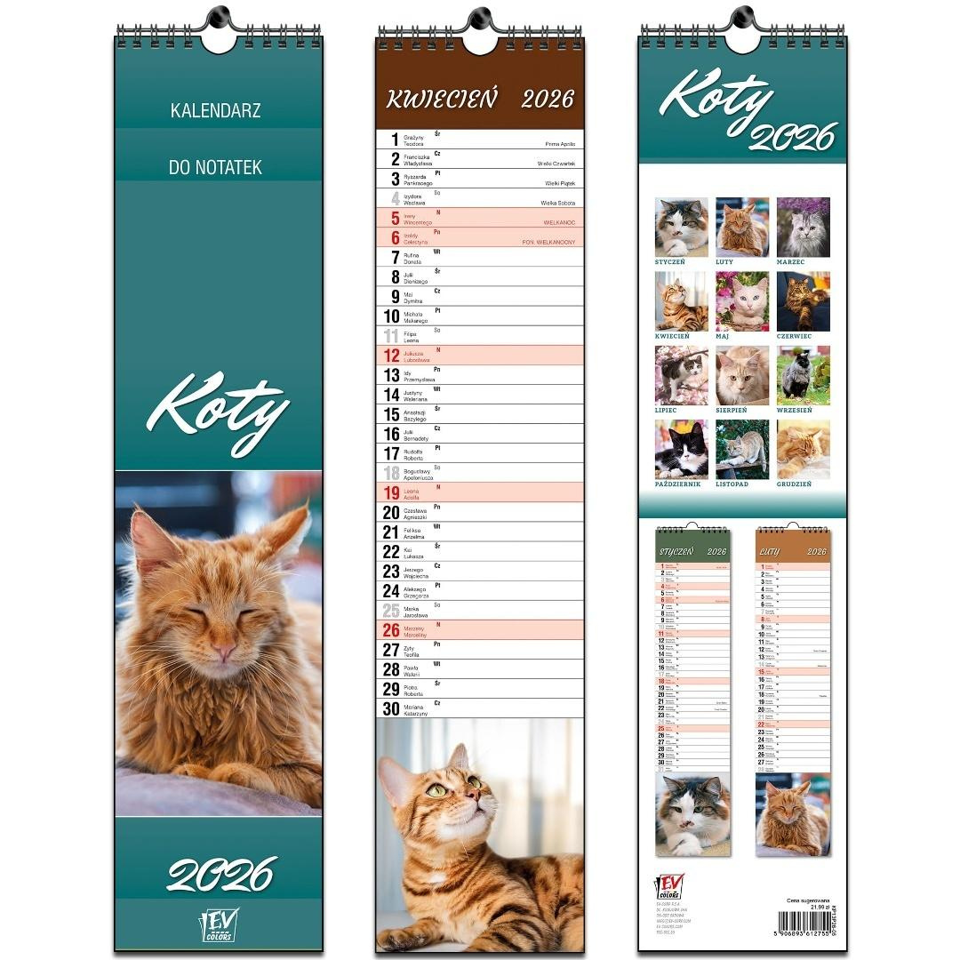 Kalendarz 2026 paskowy 13 planszowy Koty