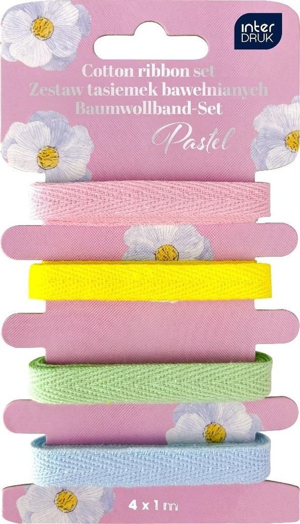 Zestaw tasiemek bawełnianych 4x1m Pastel