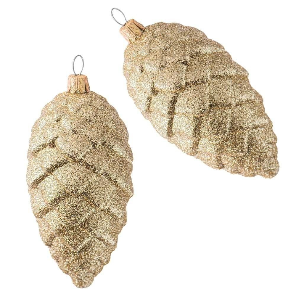 Ozdoby świąteczne w kształcie szyszek to ręcznie wykonany zestaw dwóch sztuk o wyjątkowym, ażurowym designie pokrytym brokatem. Każdy element został przygotowany z dużą dbałością o detale. Dekoracje wykonano z plastiku, a wymiary pojedynczej szyszki to 50 50 105 mm. Złoty kolor sprawia, że świetnie prezentują się na choince oraz innych świątecznych aranżacjach. Każda szyszka posiada nitkę, która umożliwia łatwe zawieszenie.