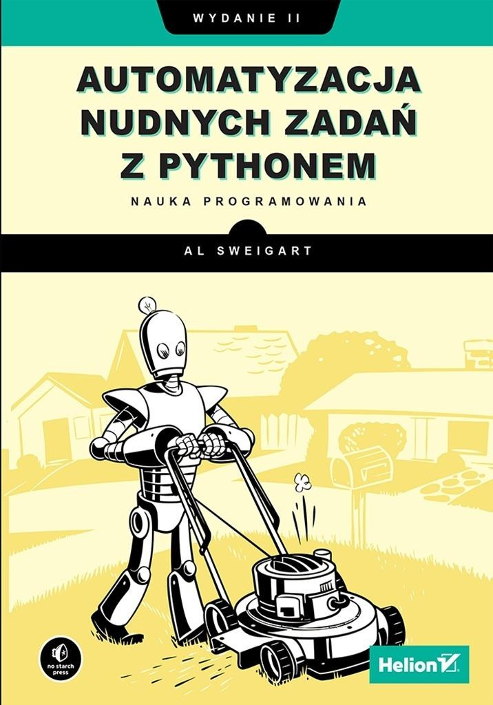 Ta książka jest drugim wydaniem nietypowego podręcznika programowania w Pythonie. Dzięki niej nie zostaniesz mistrzem świata w kodowaniu, za to nauczysz się tworzyć programy, które oszczędzą Ci mnóstwo czasu i wysiłku. Nawet jeśli nigdy nie programowałeś, błyskawicznie opanujesz podstawy i zapoznasz się z obszerną biblioteką Pythona przeznaczoną do automatyzacji takich zadań jak pobieranie danych z witryn internetowych, odczytywanie dokumentów oraz operacje wymagające klikania myszą i wpisywania tekstu. To wydanie zawiera nowy rozdział poświęcony weryfikacji danych wejściowych, a także samouczki dotyczące automatyzacji pracy z arkuszami Google i pocztą Gmail oraz podpowiedzi związane z automatycznym uaktualnianiem plików CVS.