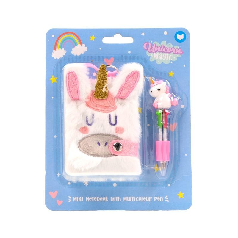 Notatnik pluszowy mini A7 z długopisem wielokolorowym - Unicorn Magic