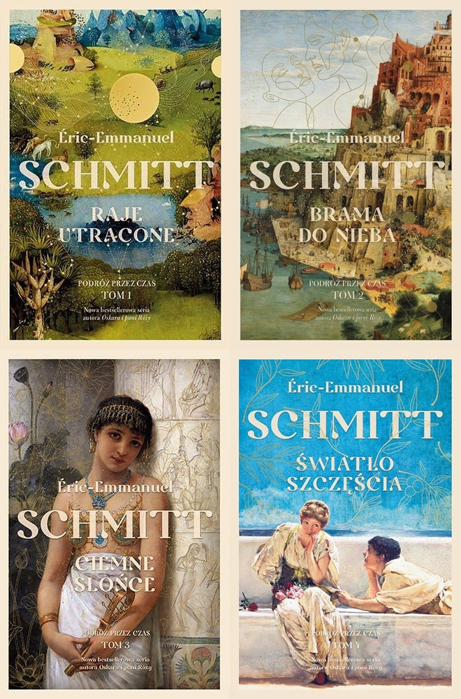 Éric-Emmanuel Schmitt - francuski powieściopisarz, dramaturg, eseista i filozof. Jeden z najpoczytniejszych francuskojęzycznych autorów na świecie, uwielbiany także przez polskich czytelników. Jego książki tłumaczone są na 35 języków. Najpopularniejsze utwory Schmitta to "Oskar i pani Róża", "Dziecko Noego" i "Pan Ibrahim i kwiaty Koranu".W Polsce wydawana jest także jego bestsellerowa seria powieściowa o historii ludzkości "Podróż przez czas" (dotychczas ukazały się trzy tomy: "Raje utracone", "Brama do nieba" i "Ciemne słońce"). Éric-Emmanuel Schmitt jest również miłośnikiem i znawcą opery. Przetłumaczył na język francuski libretta do "Wesela Figara" i "Don Giovanniego". Na podstawie jego powieści powstały także opery "Oscar und die Dame in rosa" oraz "Così fan tutte".