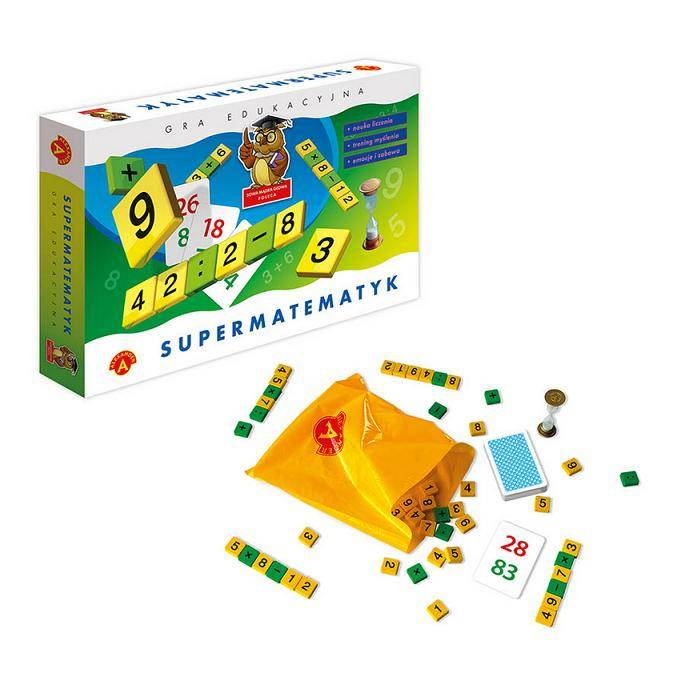 "Supermatematyk" - losując kolejno z worka cyfry i znaki działań matematycznych, gracze starają się ułożyć jak najszybciej działanie , którego wynikiem jest jedna z liczb przedstawionych na odkrytej karcie. Wygrywa ten, kto ułoży najwięcej prawidłowych działań. Gra zmusza do myślenia, jest emocjonującą zabawą i zarazem znakomitym treningiem liczenia.