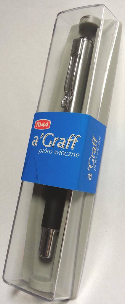 Pióro wieczne z grawerowaną irydową stalówką zwieńczoną kulką typu F. Idealne połączenie materiałów wykończeniowych potwierdza atrybuty pióra klasy Premium odpowiedniego do pisania przy różnych okazjach. Charakterystyczny, delikatny klip. Obudowa w różnych kolorach: czarny, żółty, niebieski, czerwony, zielony, pomarańczowy, różowy, srebrny. Kolor wysyłany losowo.