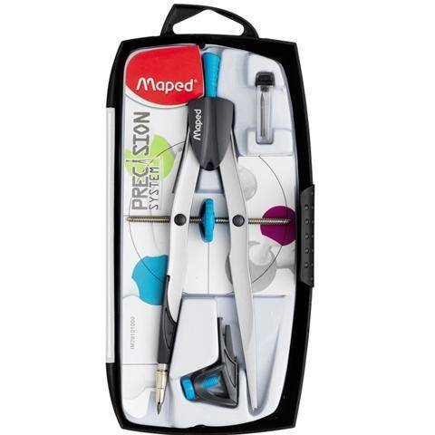 Cyrkiel zerowy z końcówką grafitową i uniwersalną oraz zapasowymi grafitami, maksymalny promień 300 mm, długość cyrkla 165 mm. Pudełko odporne na pęknięcia.