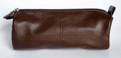 Jednokomorowa saszetka z zamkiem błyskawicznym wykonana ze skóry ekologicznej.