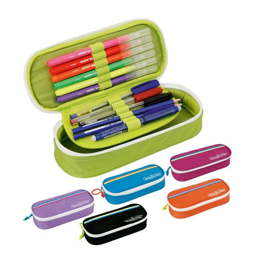 zawiera: 6 pisaków Carioca Neon, 3 długopisy Corvina Arrow (czerwony, czarny, niebieski), 2 ołówki HB, długopis wymazywalny Carioca