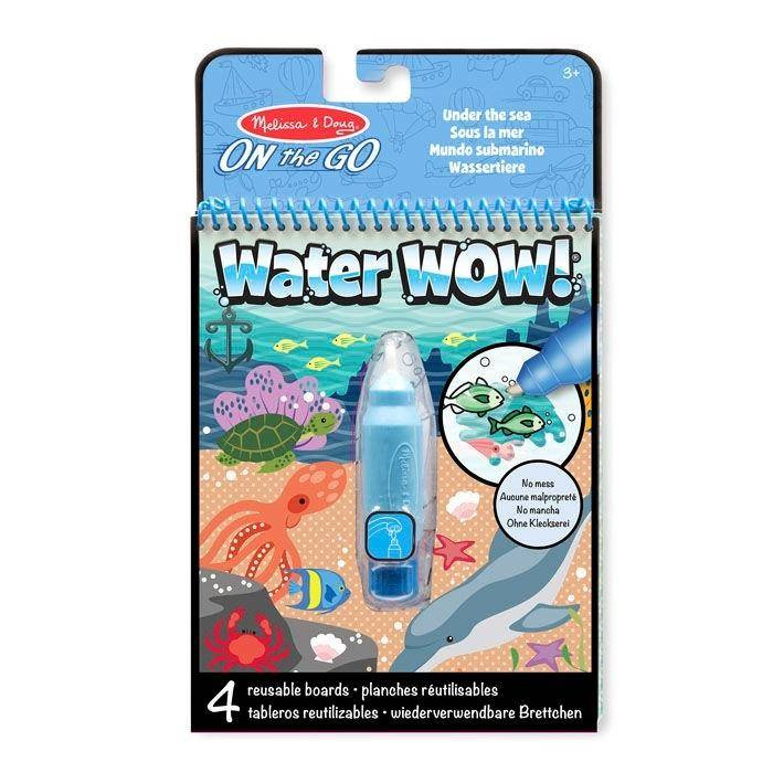 Malowanie bez bałaganu, brudzenia rąk czy ubrań! Ta książka do kolorowania zawiera cztery strony do wielokrotnego użytku i specjalny długopis wielokrotnego użytku. Należy napełnić długopis zwykłą wodą i zacząć malować po karcie. Za każdym pociągnięciem pędzelka pojawiają się koleje szczegóły! Po wyschnięciu rysunku kolory zanikają, karta nadaje się do ponownego malowania. Ta książeczka o podwodnej tematyce, zawiera cztery sceny do pomalowania. Dla każdego z obrazków jest dodatkowe zadanie - maluch powinien odnaleźć poszukiwane, wskazane symbole. Długopis wodny jest łatwy do przechowywania, ma swoje miejsce w obudowie. Water WOW są idealnymi kolorowankami do podróżowania. Książeczka jest w języku angielskim.