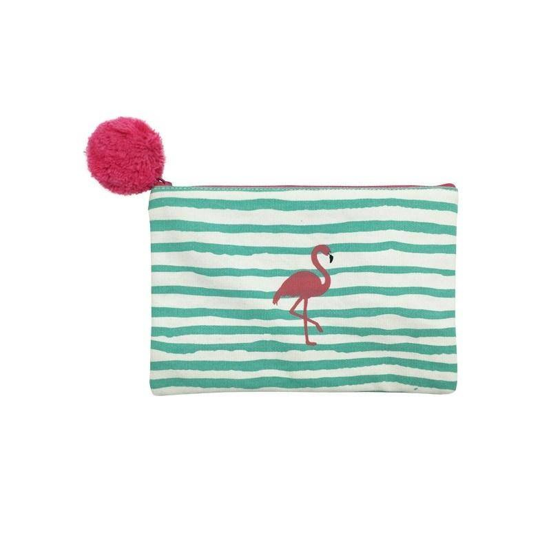 Piórnik saszetka z wakacyjnym nadrukiem flaminga z różowym pomponem. Pomieści bez problemu konieczne przybory szkolne, może też służyć do przechowywania drobnej biżuterii czy kosmetyków. Wykonany z wysokiej jakości materiałów, bezpiecznych dla dziecka. Uniwersalny, pojemny i trwały. Zamykany na zamek błyskawiczny.