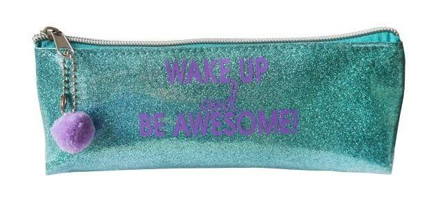 PIÓRNIK 21X6CM, WAKE UP, ZIELONY Z POMPONEM.