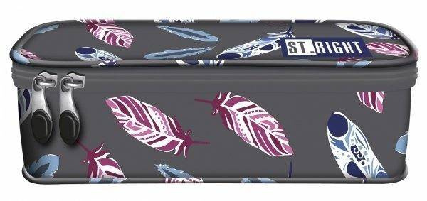 Duży piórnik XL typu HARD CASE, jest usztywniony pianką. Charakteryzuje się bardzo starannym wykonaniem oraz nietuzinkowym wzorem w indiańskie piórka. Piórnik uszyto z wytrzymałego i wodoodpornego materiału. Wewnątrz znajduję się zapinana na zamek kieszeń na potrzebne drobiazgi. W piórniku znajduję się praktyczny, wyjmowany organizer na 12 przyborów do pisania co ułatwi ich znalezienie. Z drugiej strony zakładki kieszonka na zamek oraz miejsce na plan lekcji. Piórnik zamykany jest na dwukierunkowy suwak, zakończony dużymi poręcznymi pullerami. Piórnik jest dopasowany wzorem do pozostałych produktów z tej kolekcji.