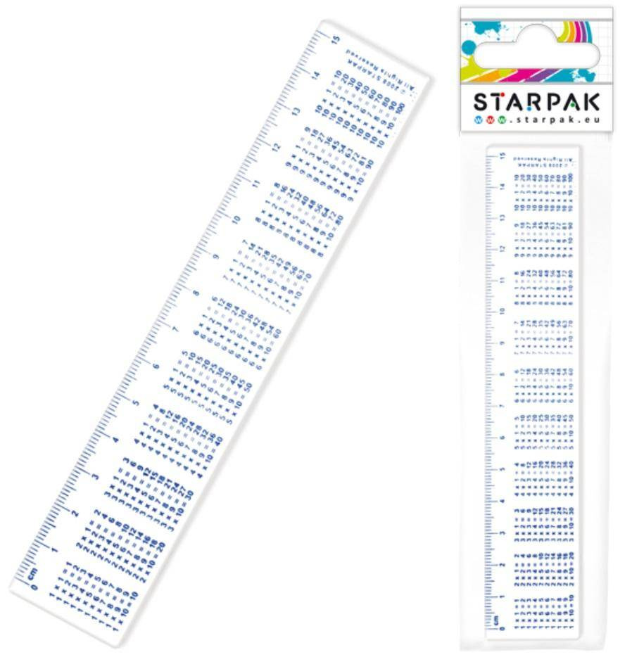 Linijka z kolekcji Starpak z tabliczką mnożenia, wykonana z trwałego plastiku o zaokrąglonych zakończeniach dla większego bezpieczeństwa Twojego dziecka. Zapoznaj się również z innymi produktami Starpak! Linijka o długości 15 cm z podziałką na centymetry i milimetry. Pakowana w folię z zawieszką.