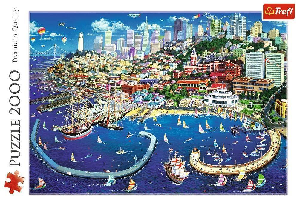 Puzzle składające się z 2000 elementów przedstawiające widok na piękną Zatokę San Francisco. Po ułożeniu powstanie obraz o wymiarach 961x682 mm. Produkt został wykonany z wysokiej jakości materiałów, z zastosowaniem specjalnego kalandrowanego papieru odbijającego światło, co ułatwia układanie. Produkt został wyprodukowany w Polsce, a do produkcji zostały użyte materiały ekologiczne.